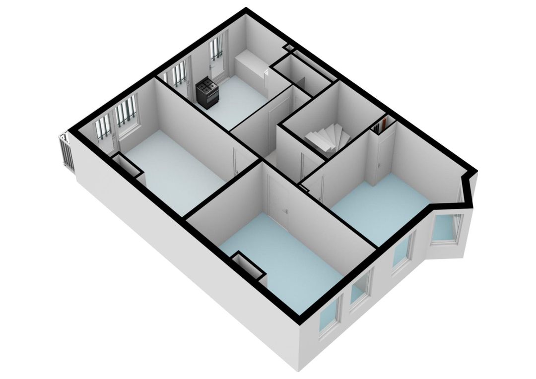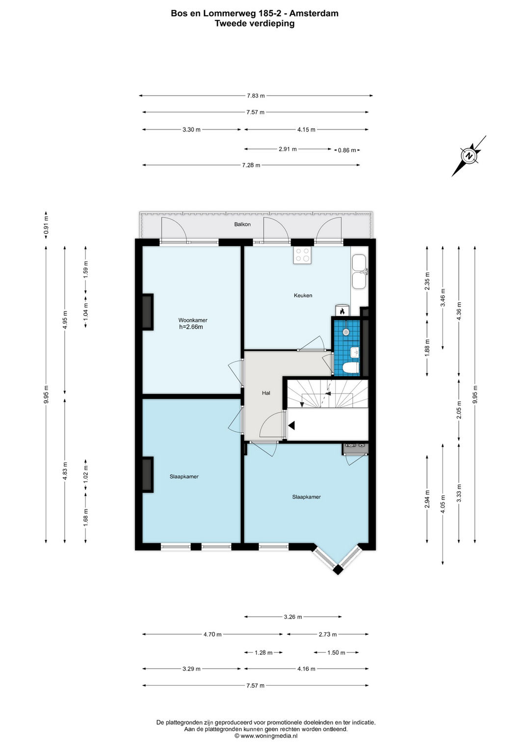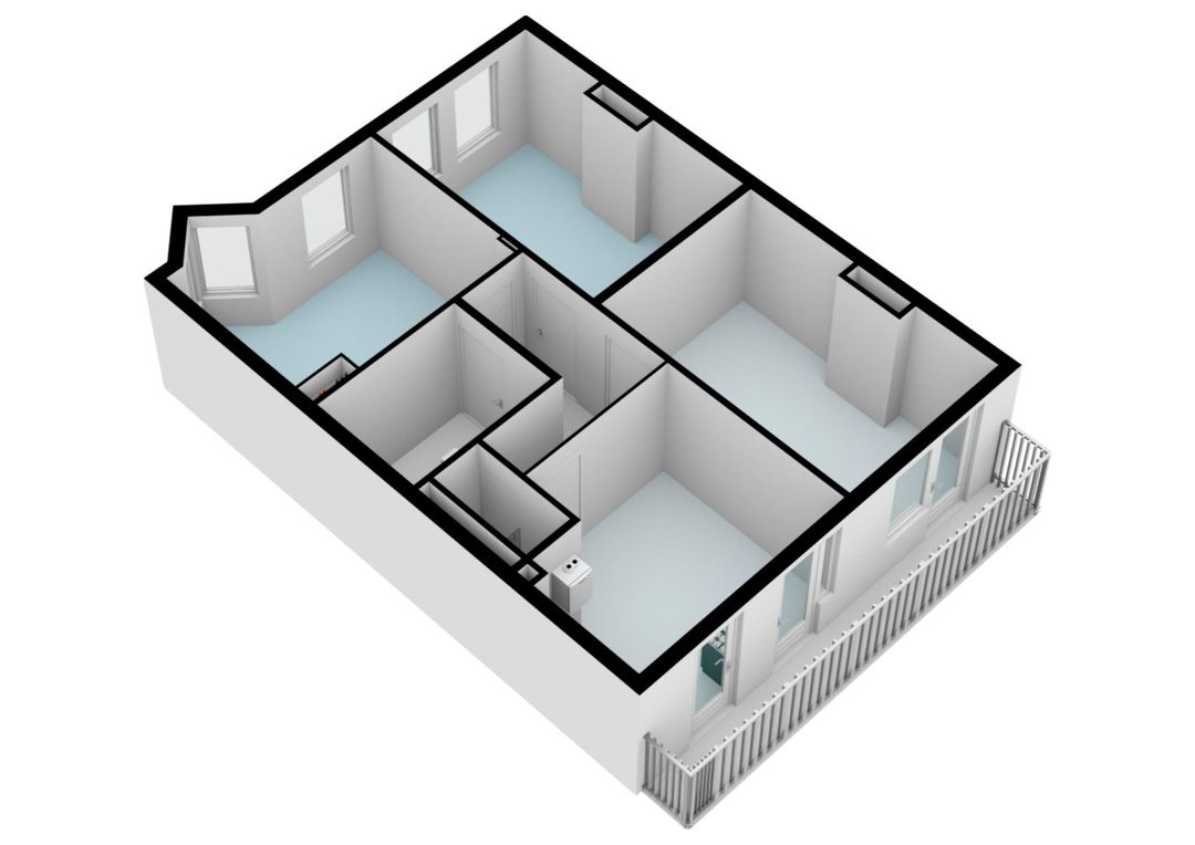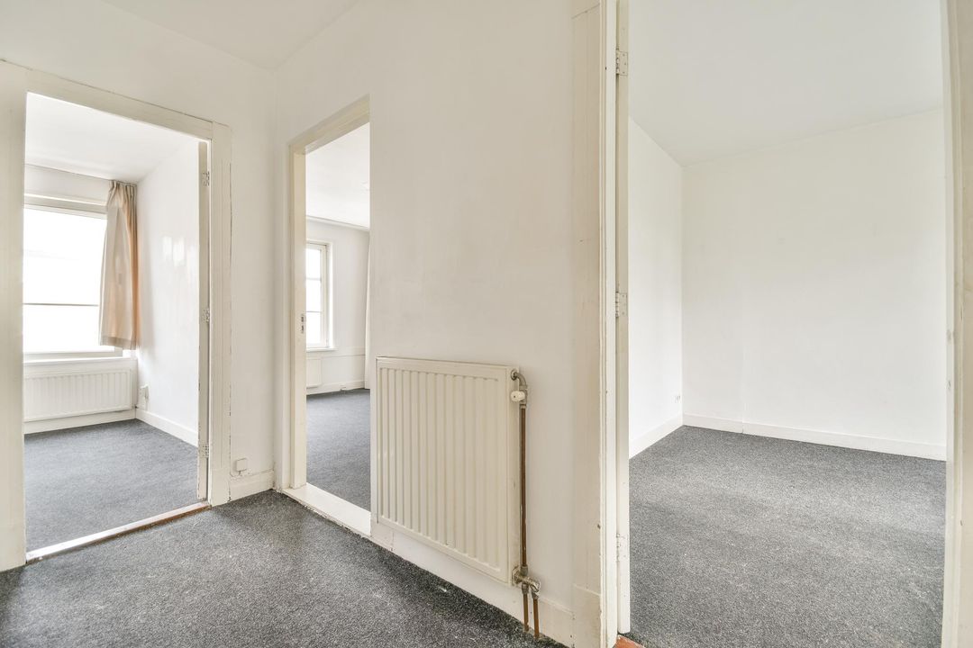Woningentree op de tweede verdieping; hal; 3 ruime kamers, waarvan één met toegang tot het zonnige balkon en één kamer met karakteristieke erker; woonkeuken met eenvoudig keukenblok en toegang tot balkon; badkamer met douche, wastafel en toilet; balkon achterzijde over volledige breedte van de woning en gelegen op het zuidenoosten.