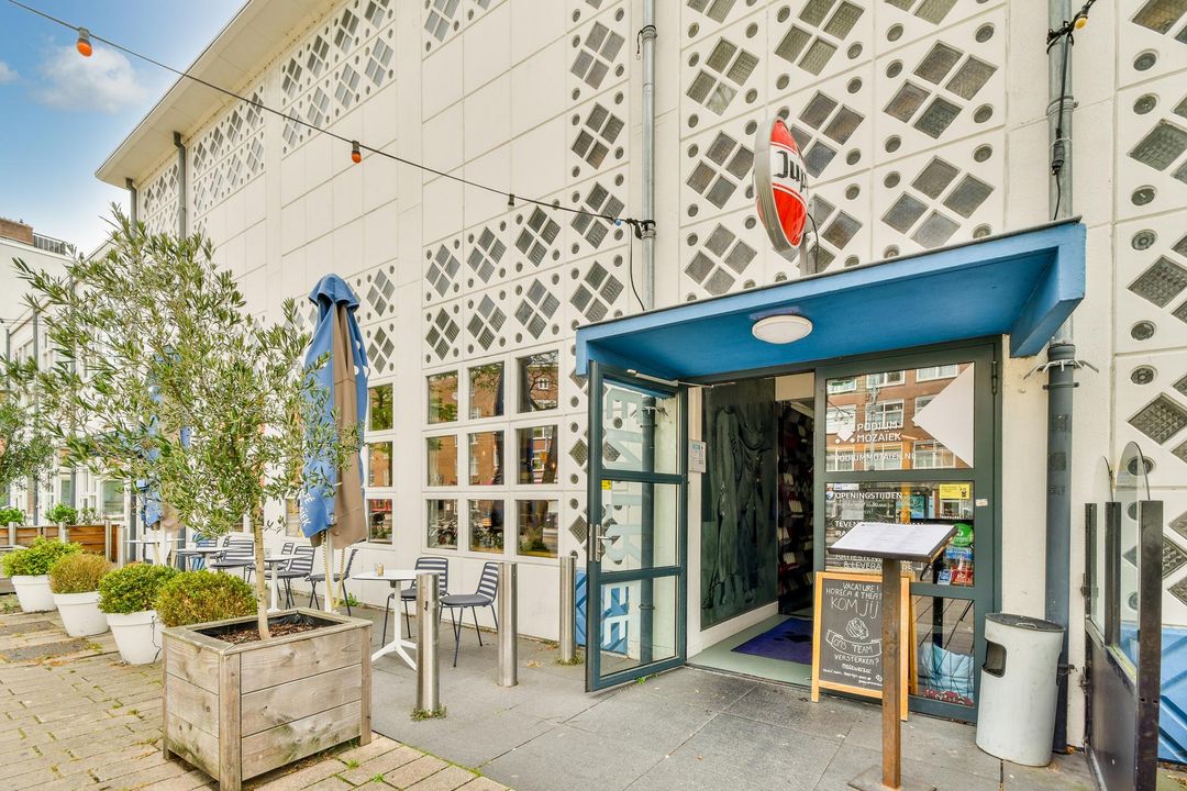 The apartment is located in the versatile Bos en Lommer on a main road. The stop for the tram to the center, East and Sloterdijk station is practically on the doorstep. You live here in a versatile shopping street with a wide range of shops including various supermarkets, bakeries, butchers, bookstores, toko, etc. The well-known cultural center Podium Mozaïek is also practically next door. You can cycle to the center in 10 minutes. There are various schools and play opportunities for children in the area, including the Wachterliedplantsoen with a petting zoo and playground and the adjacent Erasmus Park. By car there is an excellent connection to the A10 ring road. Bos en Lommer, nowadays also called Bolo, has developed into a trendy neighborhood where it is wonderful to live.