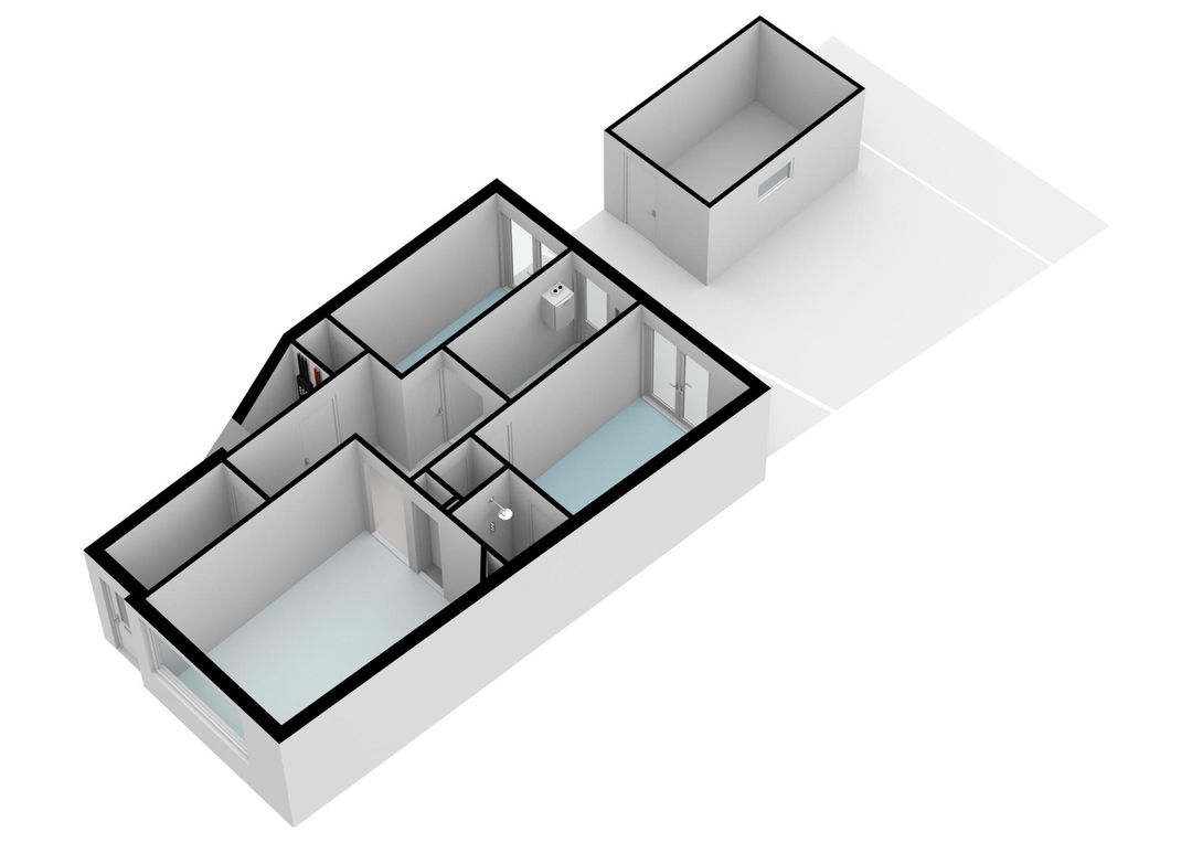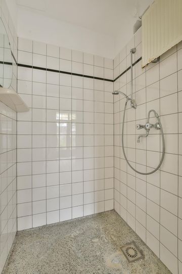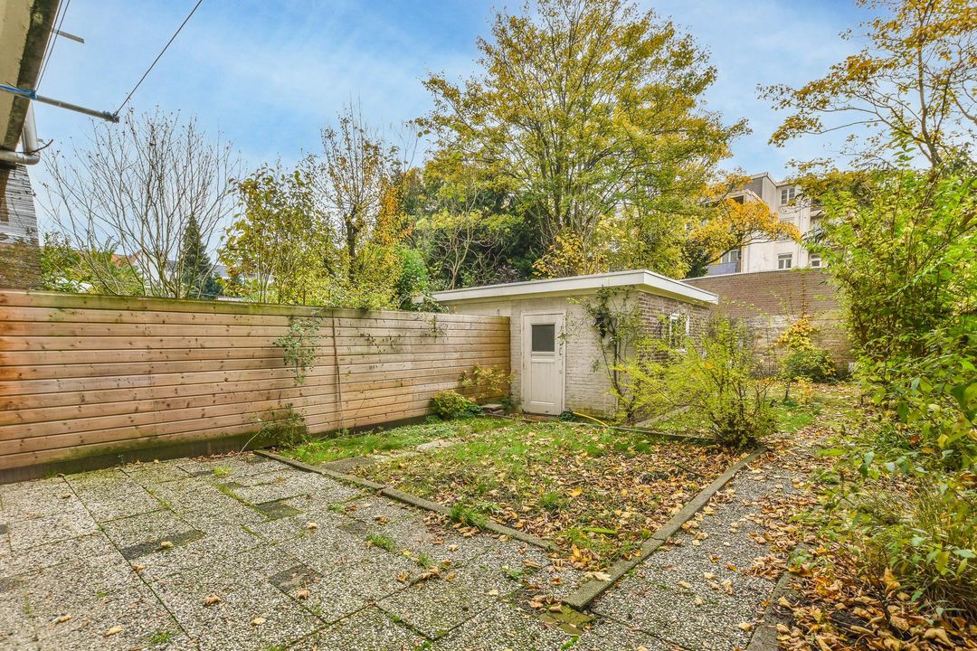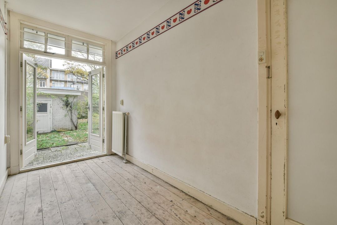 Eigen entree; gang/hal met ruime trapkast; woonkamer met inbouwkast en vrij uitzicht; twee in grootte variërende slaapkamers, 1 met inbouwkast, aan de achterzijde met openslaande deuren naar de tuin; dichte keuken met eenvoudig keukenblok en toegang tot de tuin; doucheruimte; toilet; tuin, 17,5 m diep, gelegen op het zonnige zuiden met stenen berging