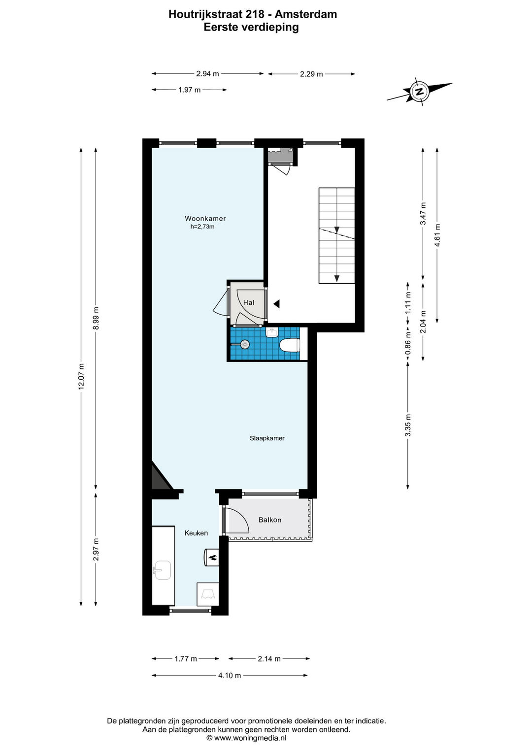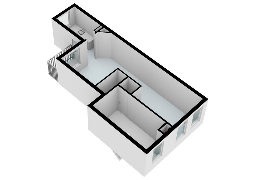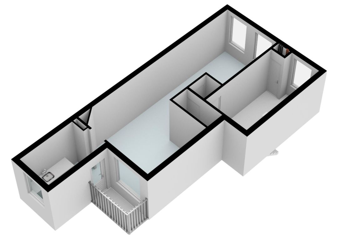 Via de gemeenschappelijk entree bereikt u op de eerste verdieping de voordeur van de woning. U komt binnen in de hal met garderobe en intercom,. De ruime U-vormige kamer kan worden verdeeld in 2 kamers. Wilt u een derde kamer dan is dit mogelijk door de keuken te verplaatsen naar de woonkamer. De aparte keuken met eenvoudig keukenblok, wm-aansluiting en toegang tot het balkon is nu aan de achterzijde gelegen. De douche-/toiletcombinatie is voorzien van een wastafel. De berging is gelegen op de vierde verdieping.